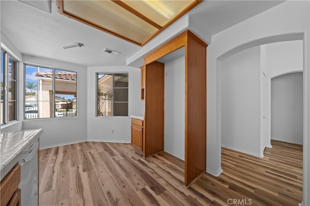 ***PRICED TO SELL**NOT a 55+ community**Welcome to this beautifully updated single-story courtyard home in the highly desirable Andalusia community of Menifee Lakes Golf Course! Discover the perfect blend of comfort, charm, and lifestyle in this home set right on the fairway in Menifee Lakes. With 2 bedrooms plus a den that is literally ready to be a THIRD BEDROOM by adding only a DOOR, 2 full bathrooms, and 1,466 square feet, this light and airy residence delights you with vaulted ceilings, fresh paint, and brand-new flooring throughout. The open layout is anchored by a double-sided fireplace that connects the family and dining rooms, creating an inviting space for gatherings or quiet evenings in. The kitchen’s bay windows and breakfast nook bring in natural light, while the spacious primary suite features dual mirrored closets and a slider leading to the covered patio. Step outside to enjoy breathtaking golf course views and glowing sunsets, perfect for entertaining or relaxing in the mild California climate — all the while set on a backdrop you’ll never tire of. Additional highlights include indoor laundry with cabinets, ample storage with multiple linen closets and garage cabinetry, and a low-maintenance yard. The gated courtyard entry adds privacy and curb appeal, absolute perfection for the upcoming trick-or-treaters! Life in Menifee Lakes offers more than just a home — it’s a lifestyle. Enjoy the resort-style amenities, spend sunny days at the private Beach Club with its lagoon-style pool, sandy beach entry, water slide, and BBQs, or enjoy paddle boating, miles of scenic walking and biking trails, and year-round community events. Golf enthusiasts will love being part of this premier course community, and everyone will appreciate the low HOA fees, lower taxes, and unbeatable location near shopping, dining, schools, and the 215 freeway. With its close proximity to Temecula's renowned wine country, the best SoCal beaches, live entertainent at exciting Pechanga Casino, this home is a winner! Whether you’re a first-time buyer, downsizing, or looking for a home that feels like a retreat, this Menifee Lakes beauty has it all. Don’t miss this opportunity to make this sought after community your new home!